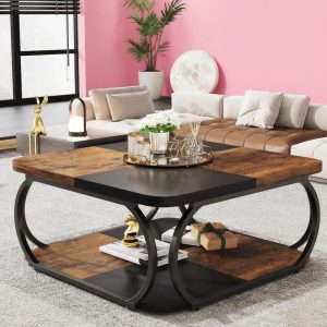 Elevating Center Table Low Table 100% Solid Oak Wood Top Plate Desk Coffee Table Width 120 x Depth 65 x Height 45 cm Study Desk Work From Home Easy To Assemble Walnut Color Wood With Storage Shelf