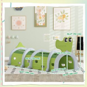 Crocodile Design Tunnel for Kids to Crawl Through, for 3-6 Years, Green