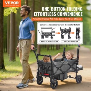 VEVOR All-Terrain Stroller Wagon, 2 Seats Foldable Expedition 2-in-1 Collapsible Wagon Stroller, Includes Canopy, Parent Organizer, Snack Tray & Cup Holders, 55lbs for Single Seat, Dark Grey/Black