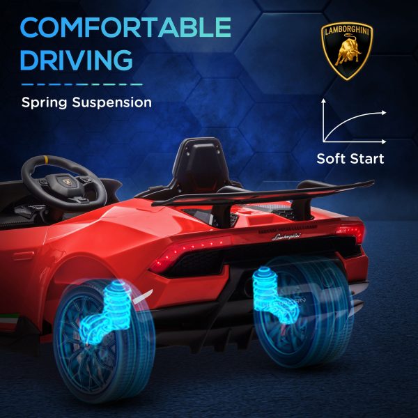 12V Lamborghini Huracan Licensed Kids Electric Car with Remote Control, Spring Suspension, Transport Wheels, Red