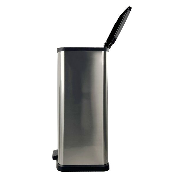 13 Gallon, Plastic Rectangular Step Garbage Bin, Silver