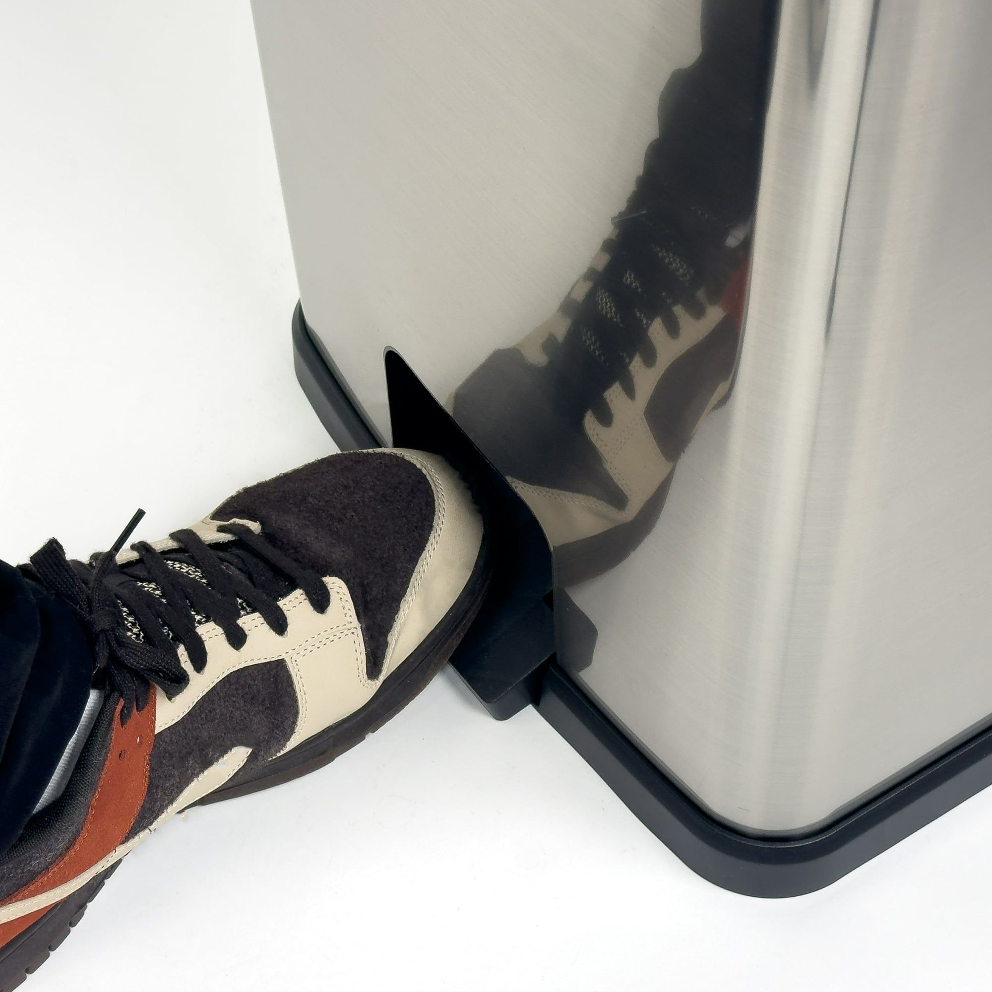 13 Gallon trashcan is ideal for any space. It features a stylish modern design with a Stainless Steel finish look but made of plastic. This spacious trashcan will add flair to any space.