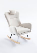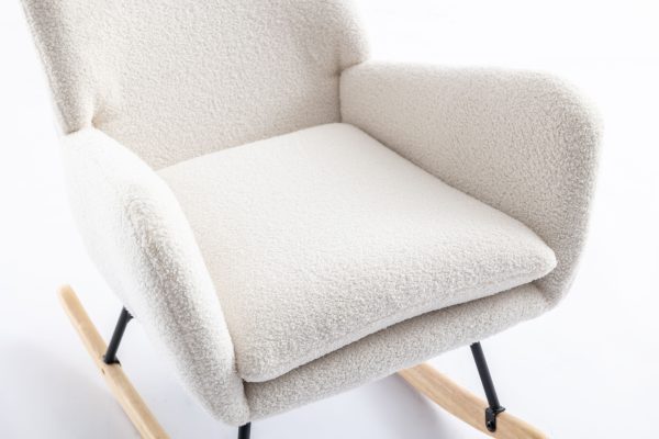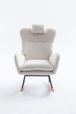 35.5 inch Rocking Chair, Soft Teddy Velvet Fabric Rocking Chair for Nursery, Comfy Wingback Glider Rocker with Safe Solid Wood Base for Living Room Bedroom Balcony