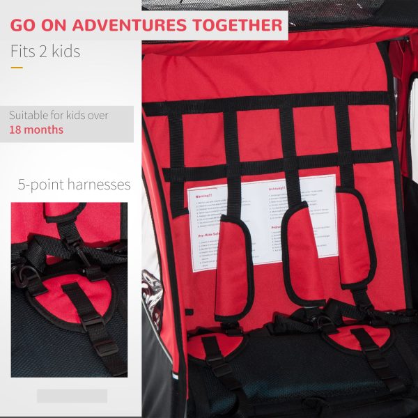 Aosom Elite 360 Swivel Double Child Red Bike Trailer, Secure Two-Wheel Bicycle Cargo Carrier with Safety Harnesses