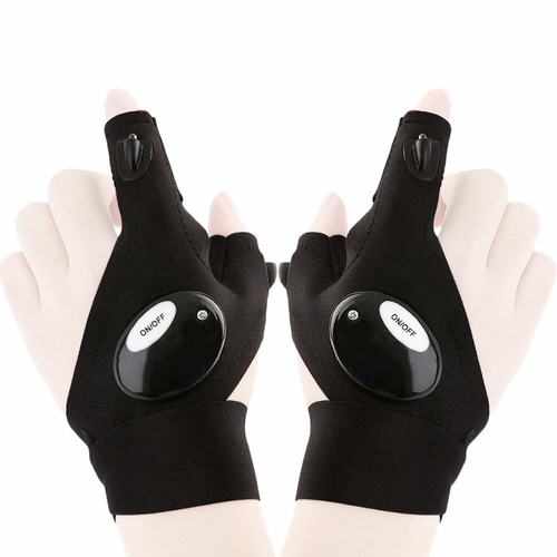 This multi-use LED flash light gloves, features bright LED lights on the index fingers and thumb. Made from comfortable breathable and stretchy material.  This gloves allows you to conveniently work at night, or in areas with dim lighting and free your hands from holding a flash light.  Ideal for fixing cars, electrical work, fishing, camping or anything that requires both hands.