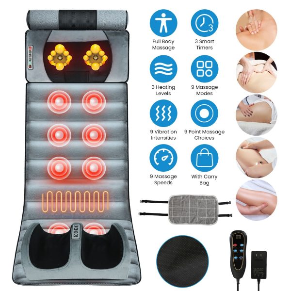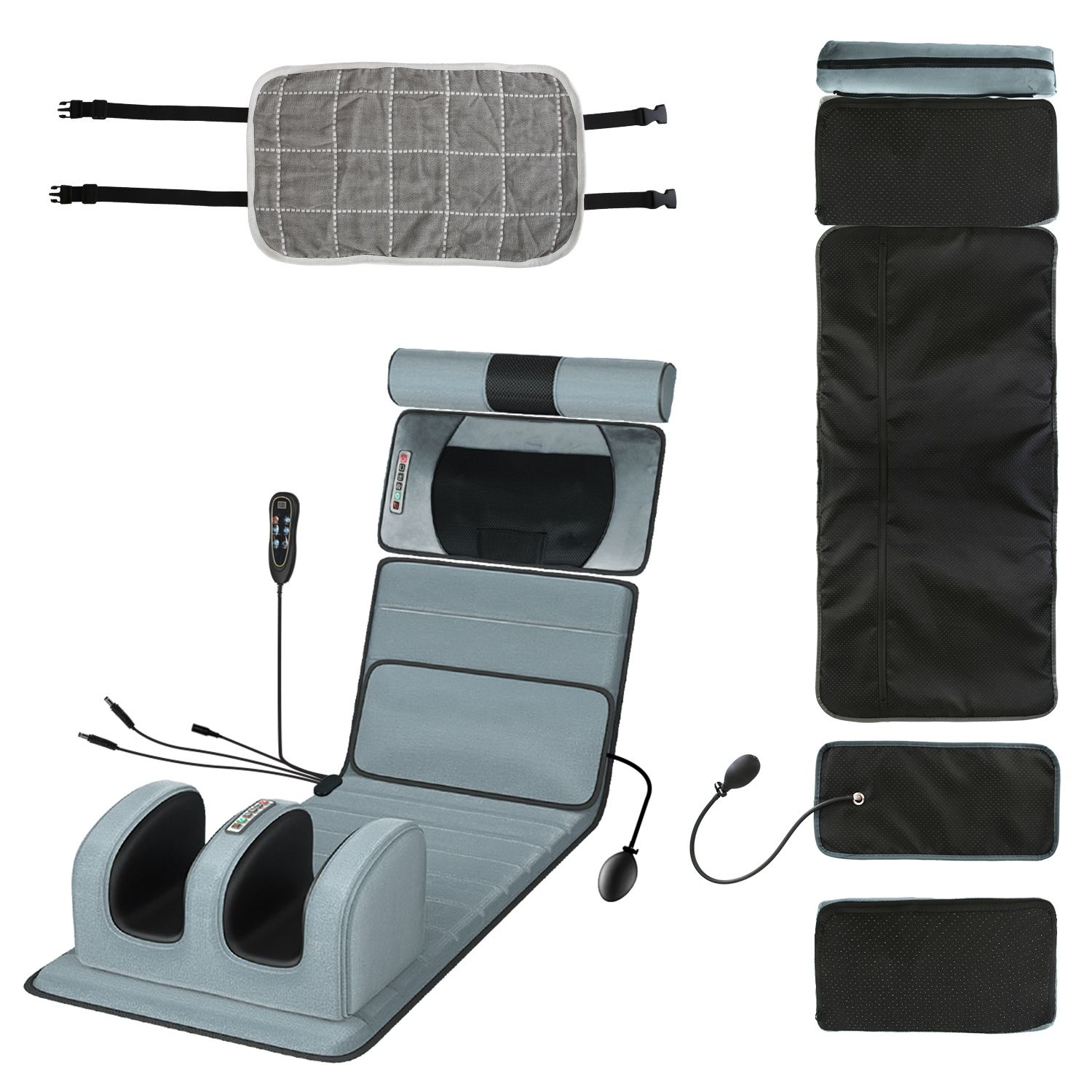 Full Body Electric Massage Mat Heating Vibration Massage Pad Cushion Back Massage Mattress Chair Pad with Neck Foot Massage Head Pillow and Cloth Lumbar Pillow Timer Anti-Slip Bottom