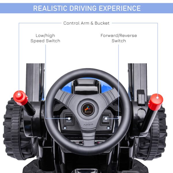 Kids Tractor 6V Battery Powered Digger Ride On Excavator Music Headlight Moving Forward Backward Blue