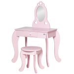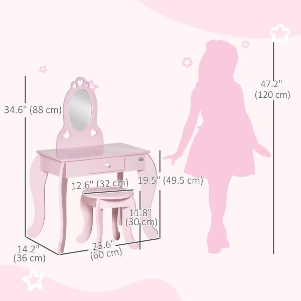 Kids Vanity Table Set with Mirror and Stool, Drawer, for 3-6 Years, Pink
