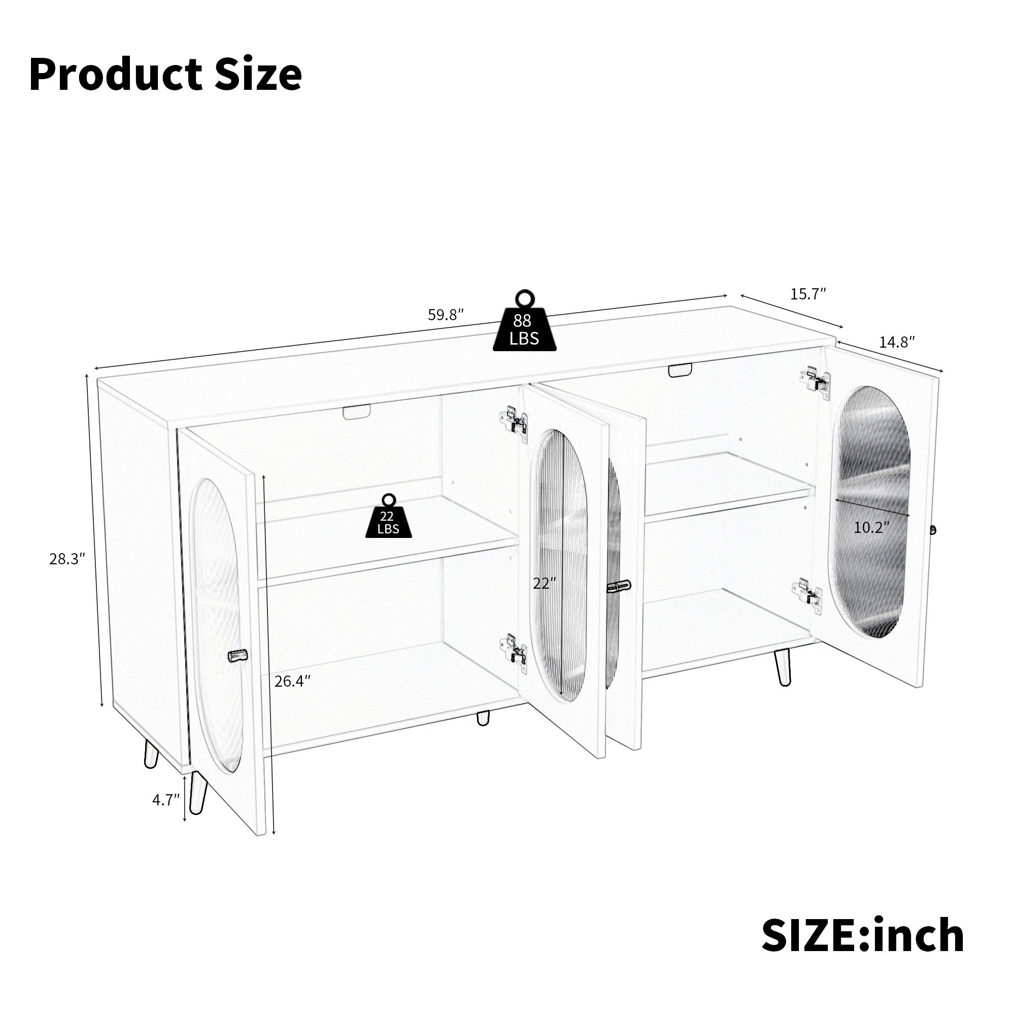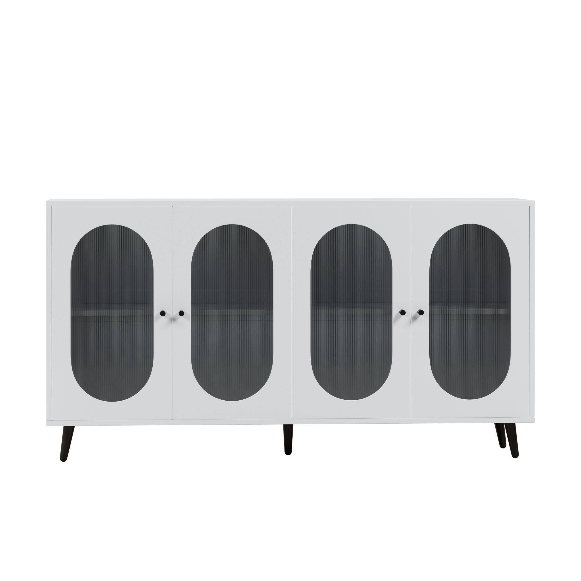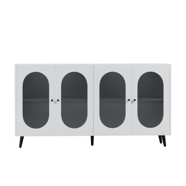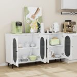 Modern Accent Sideboard Cabinet with Acrylic Doors, Freestanding Storage Cupboard Console Table for Kitchen Dining Living Room Hallway Office, White