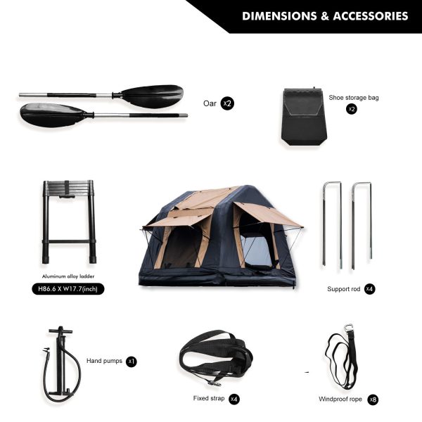 New Design 4×4 Offroad Car Roof Top Tent Amphibious Inflatable Tent With Ladder For Camping( With Ladder, Two Tone Style, Khaki & Black)
