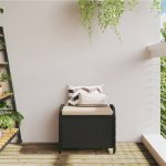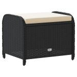 Patio Stool with Cushion Black 22.8″x18.1″x18.1″ Poly Rattan