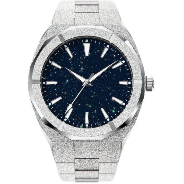 Popular stainless steel waterproof quartz watch gold steel sand starry sky face men’s watch