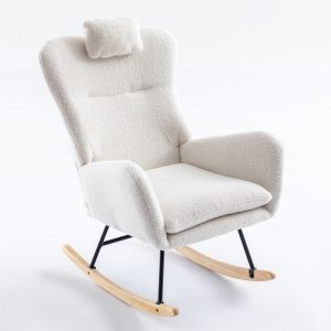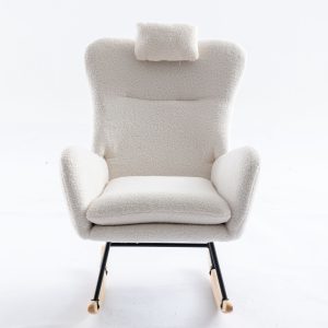 35.5 inch Rocking Chair, Soft Teddy Velvet Fabric Rocking Chair for Nursery, Comfy Wingback Glider Rocker with Safe Solid Wood Base for Living Room Bedroom Balcony