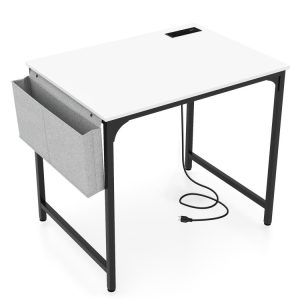 32 Inch Home Office Desk with Charging Station Storage Bag and Headphone Hook